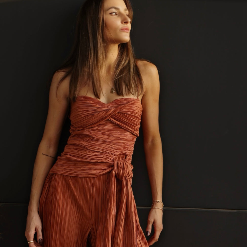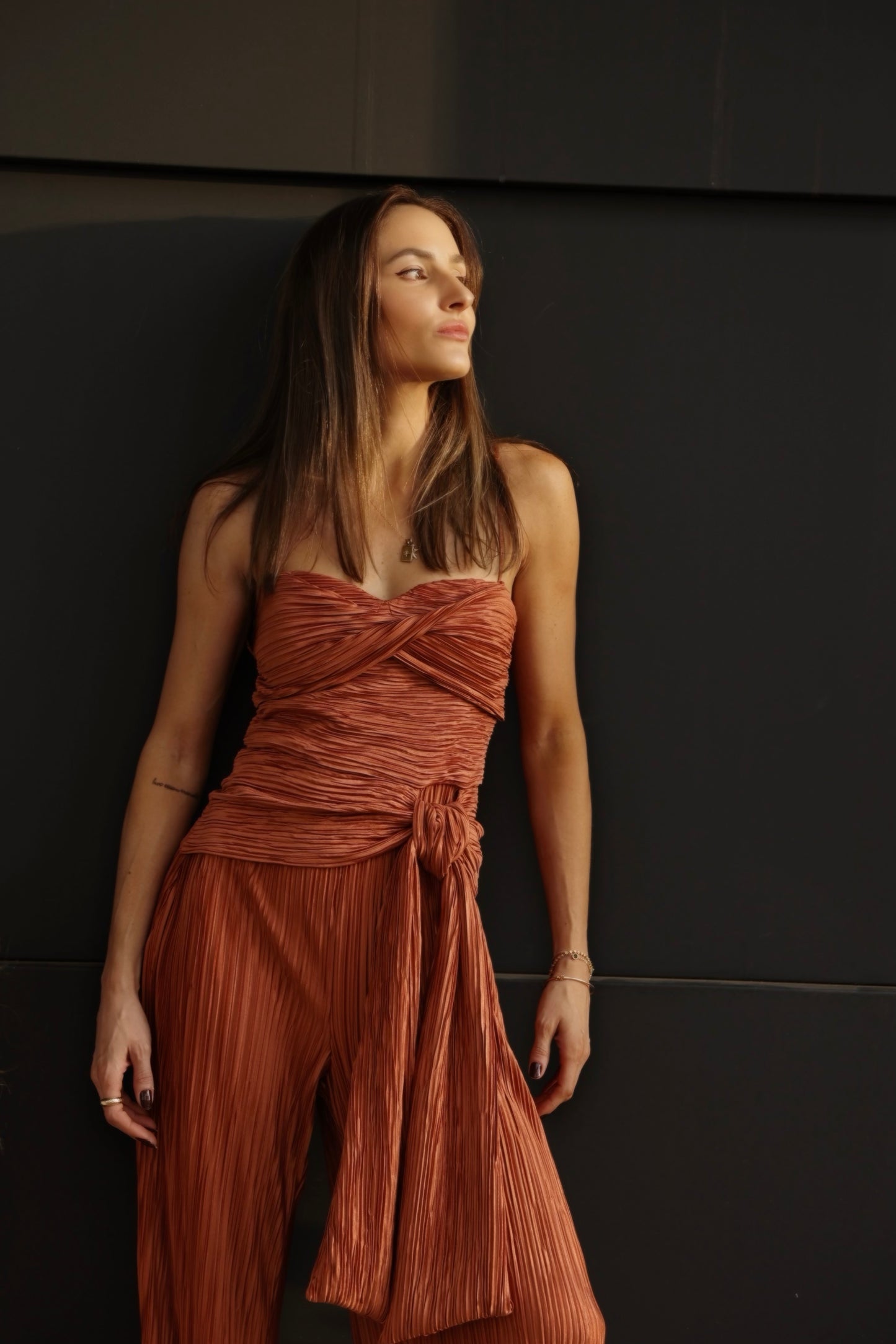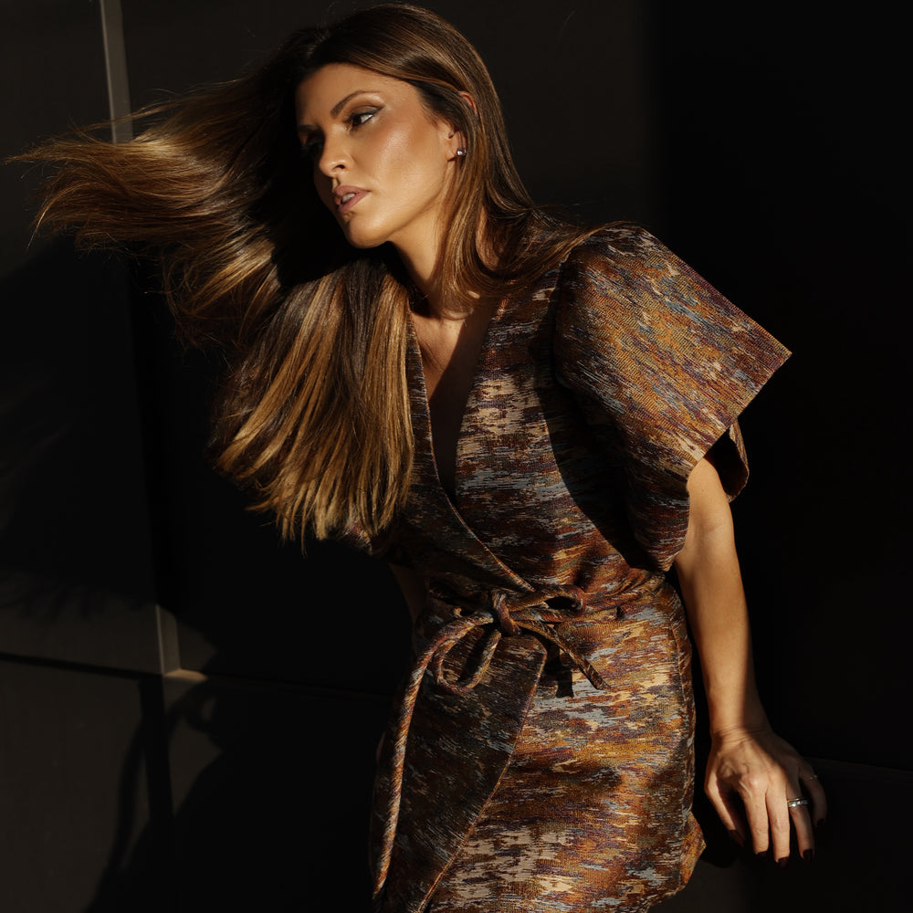 Essa energia se traduz em peças que equilibram suavidade e atitude: texturas ricas, shapes fluidos, recortes delicados e uma alfaiataria leve que acompanha o movimento com naturalidade. A paleta navega em tons terrosos trazendo um toque de calor e sofisticação à temporada.