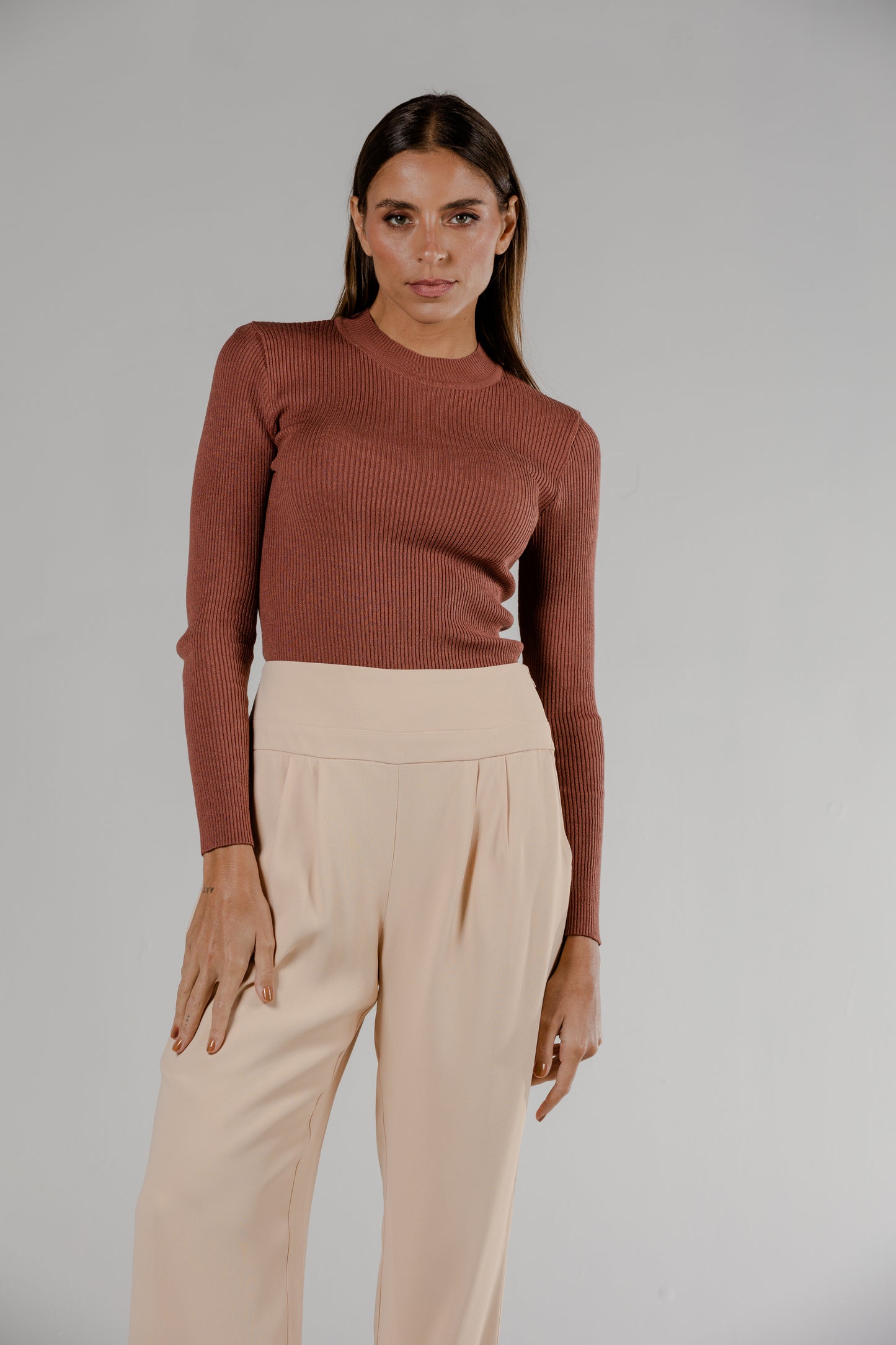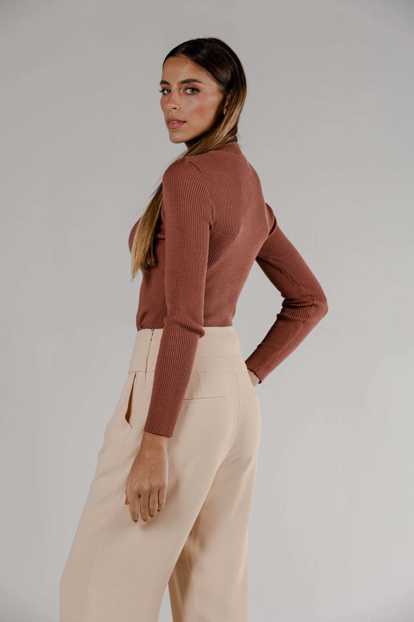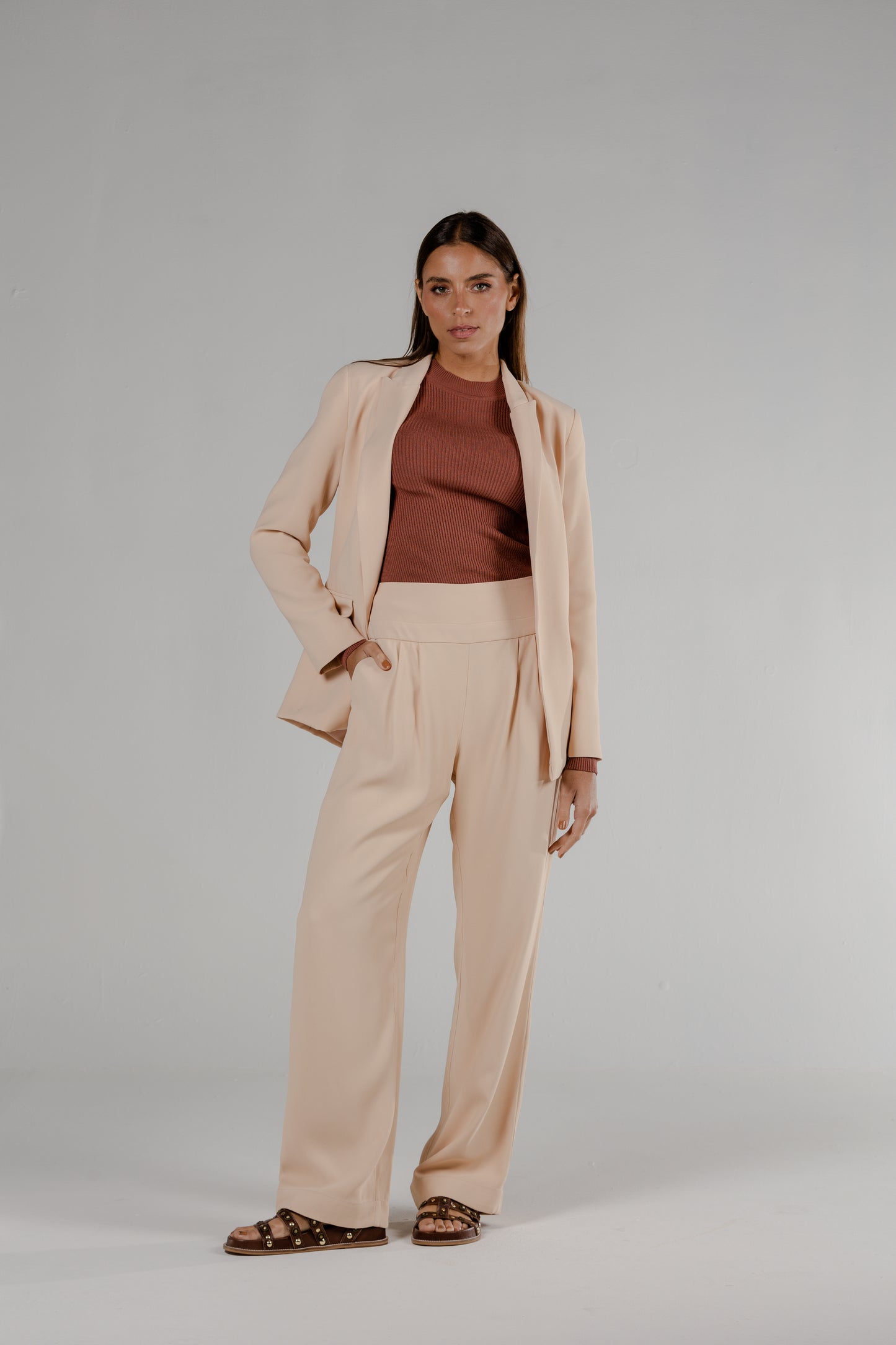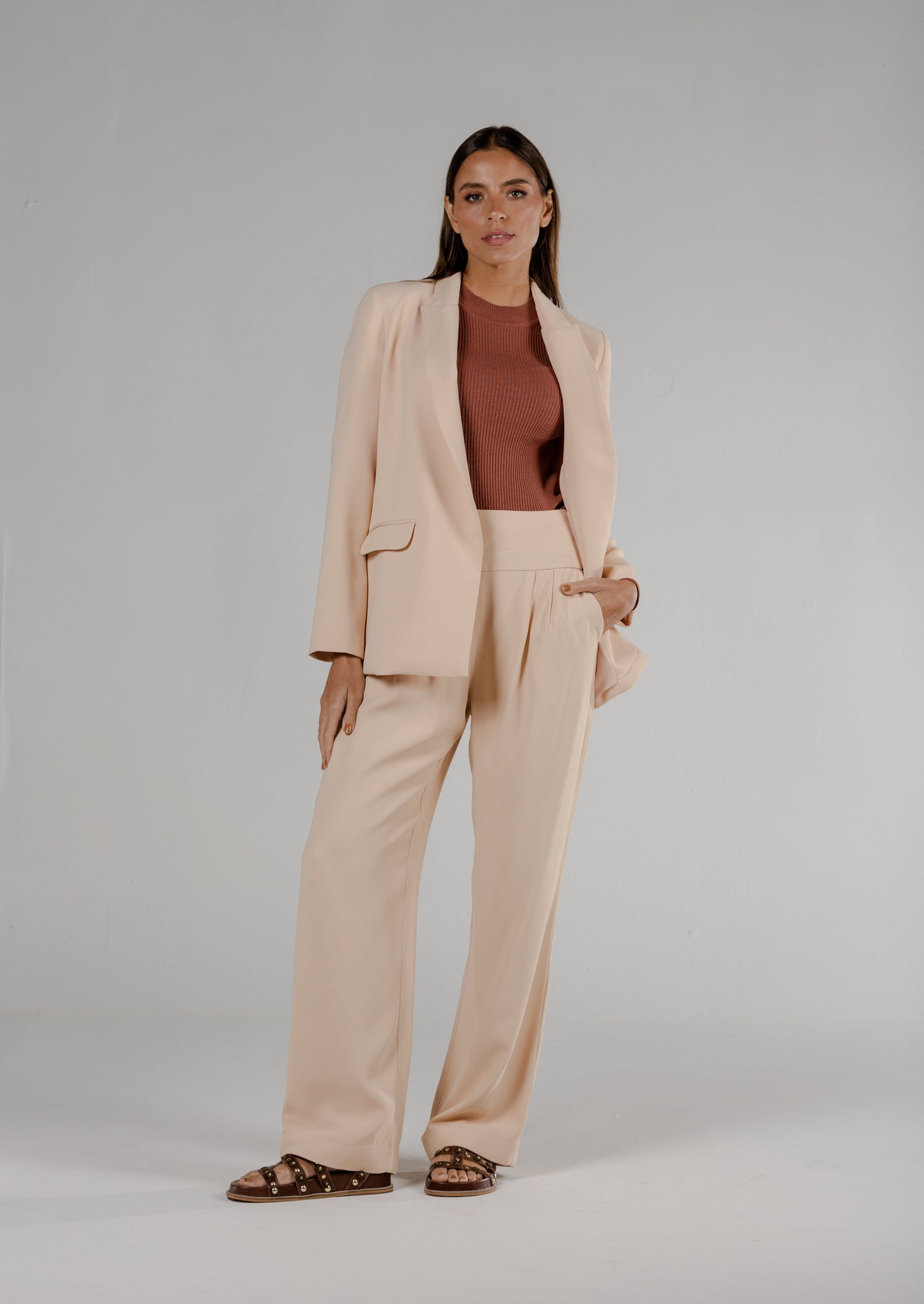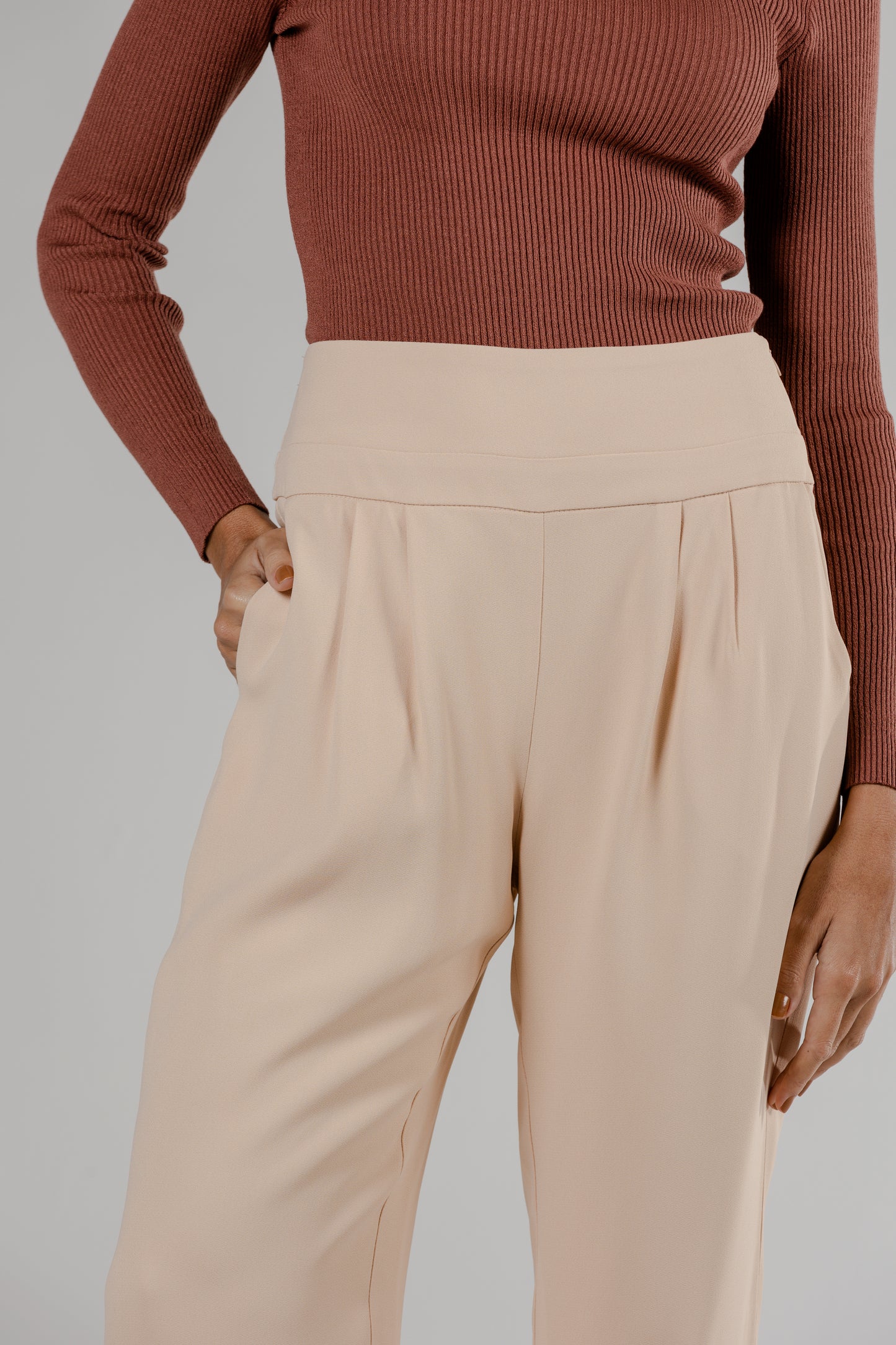 Preço regular R$ 331,60Calça reta em crepe com cós largo, zíper invisível lateral.
