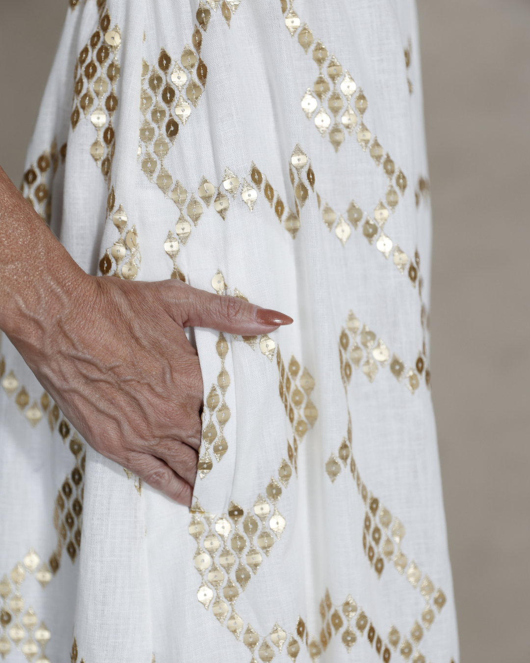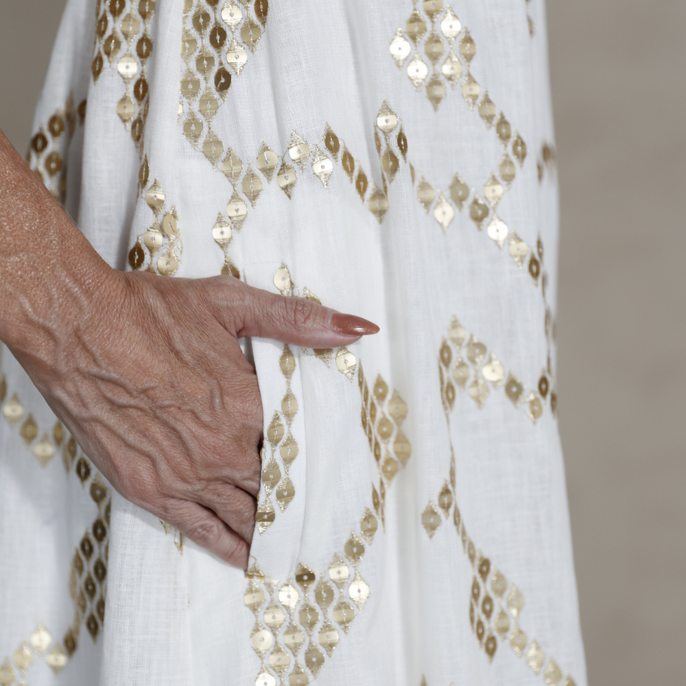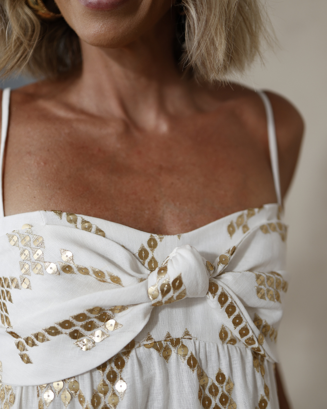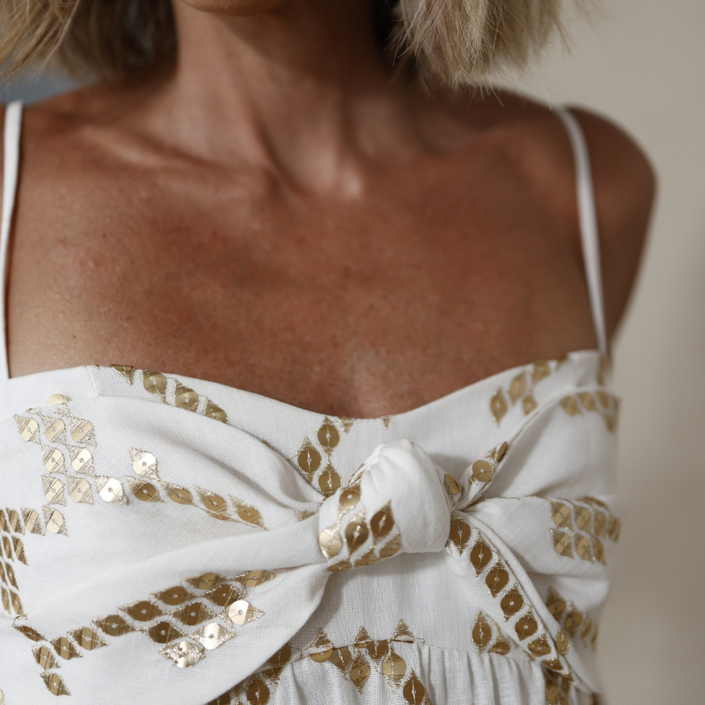 Descubra o charme único do nosso vestido longo de alça fina, perfeito para quem busca conforto e estilo em uma peça versátil. Confeccionado em tecido leve de alta qualidade, ele apresenta um delicado tom verde musgo com estampas geométricas douradas que trazem sofisticação e um toque boho chic ao visual. O destaque fica por conta do elegante laço frontal que valoriza a região do busto, conferindo feminilidade e delicadeza. Seu caimento fluido e comprimento alongado tornam essa peça ideal para ocasiões especiais ou para transformar o seu look do dia a dia com muita personalidade
