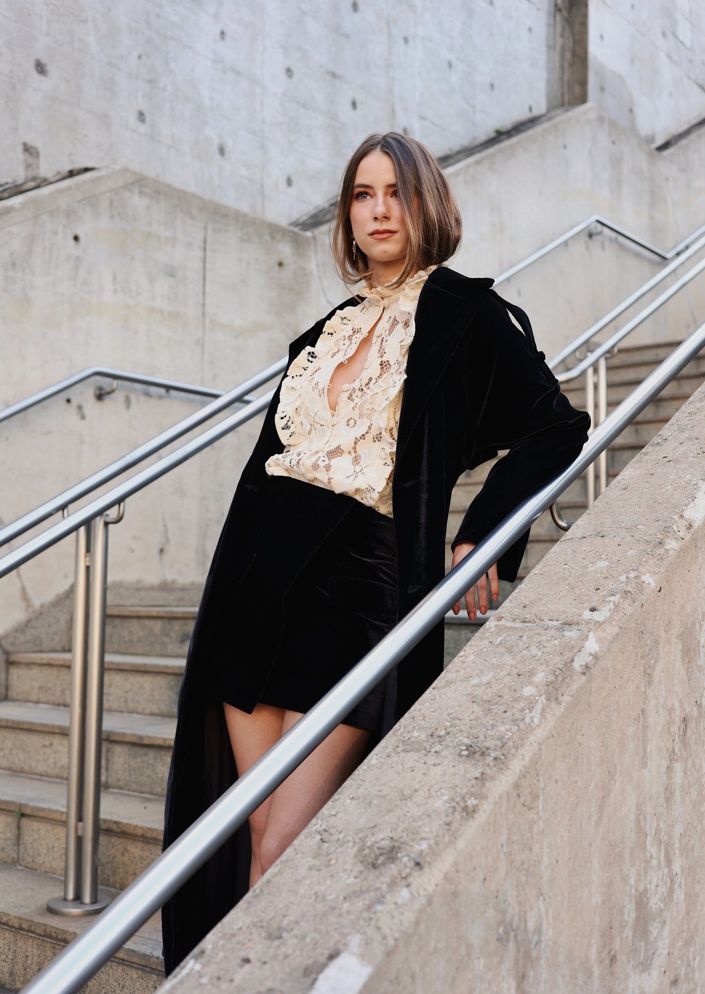 Preço regular R$ 349,00DESCRIÇÃO: Camisa em renda com babados, fechamento frontal por botões e elástico nos punhos.