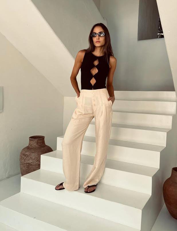 Preço regular R$ 360,00Sofisticação leve para o dia a dia: a calça reta em tom cru é confeccionada em tecido leve com toque de linho, trazendo frescor e elegância em uma peça atemporal. Possui cintura alta, pregas frontais e bolsos laterais funcionais, garantindo caimento estruturado com toque casual chic. Ideal para composições versáteis — do office look ao fim de semana descontraído. Combine com tops mais justos ou camisas soltas para um visual moderno e equilibrado.