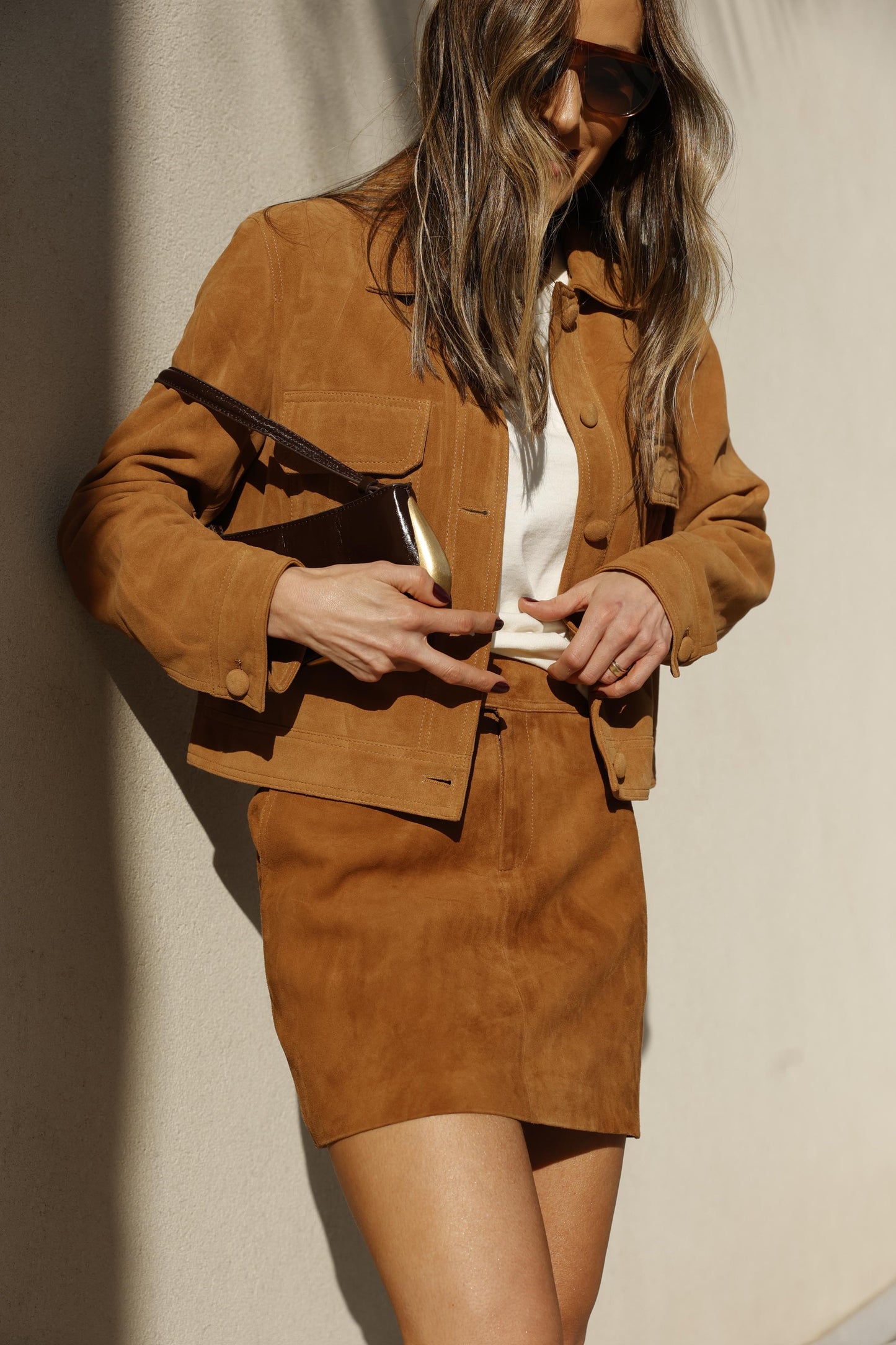 Preço regular R$ 1.678,60Mini saia em camurça com acabamento suave e toque aveludado. Modelo estruturado, com fechamento frontal por zíper metálico e colchete discreto na cintura, garantindo ajuste seguro e confortável. Possui forro interno, que oferece mais conforto e caimento impecável. Versátil e atemporal, é perfeita para compor looks modernos com personalidade.