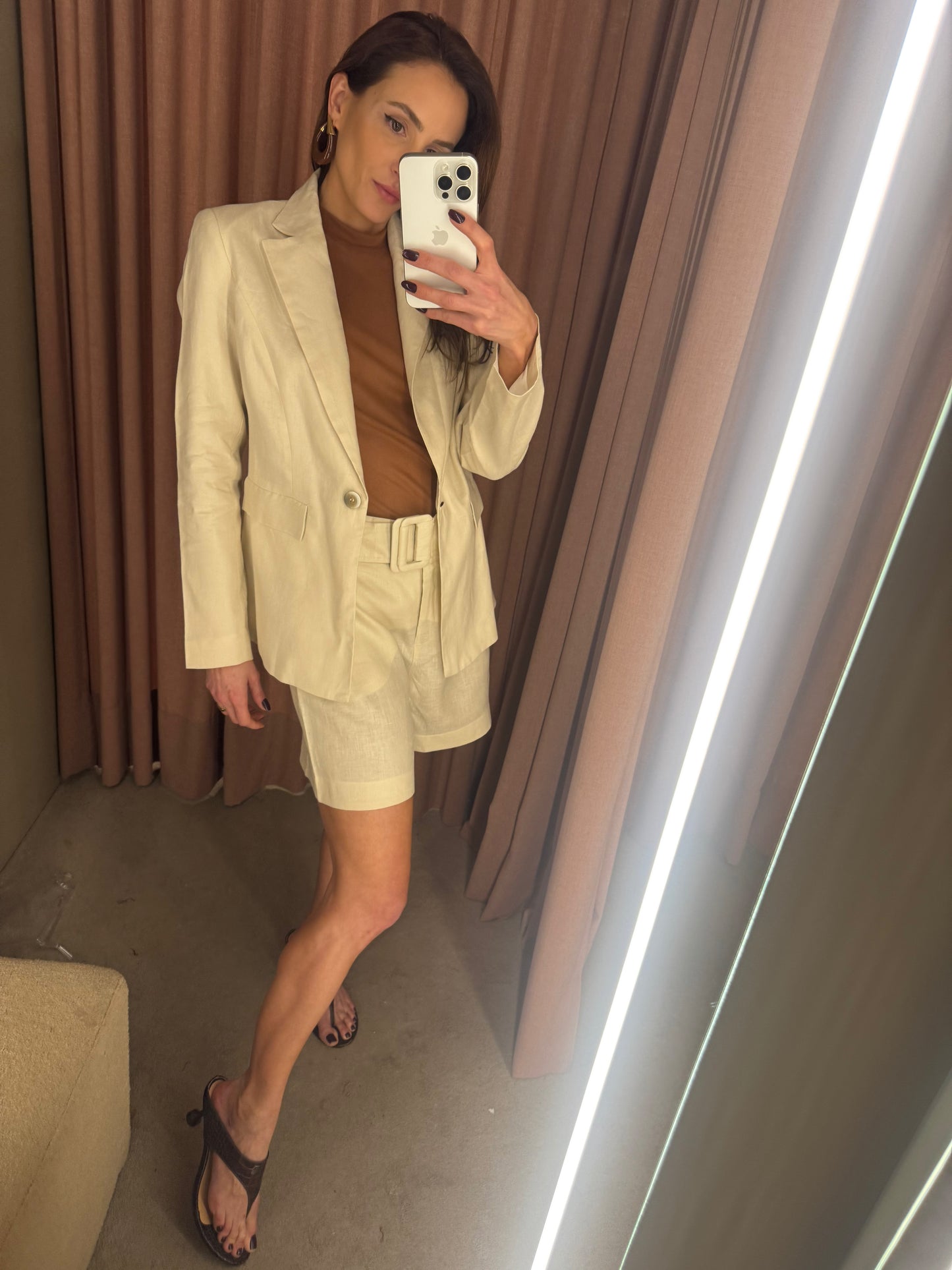 O clássico blazer de linho ganha uma nova leitura com caimento leve e toque natural. Com ombros estruturados e shape levemente alongado, essa peça traz sofisticação imediata a qualquer composição. O tecido em linho confere frescor e textura elegante, perfeito para dias mais quentes sem abrir mão do estilo. Ideal para compor looks monocromáticos ou trazer equilíbrio a produções mais ousadas. Use com o short coordenado para um visual chic & cool ou sobre vestidos fluidos para um contraste moderno.