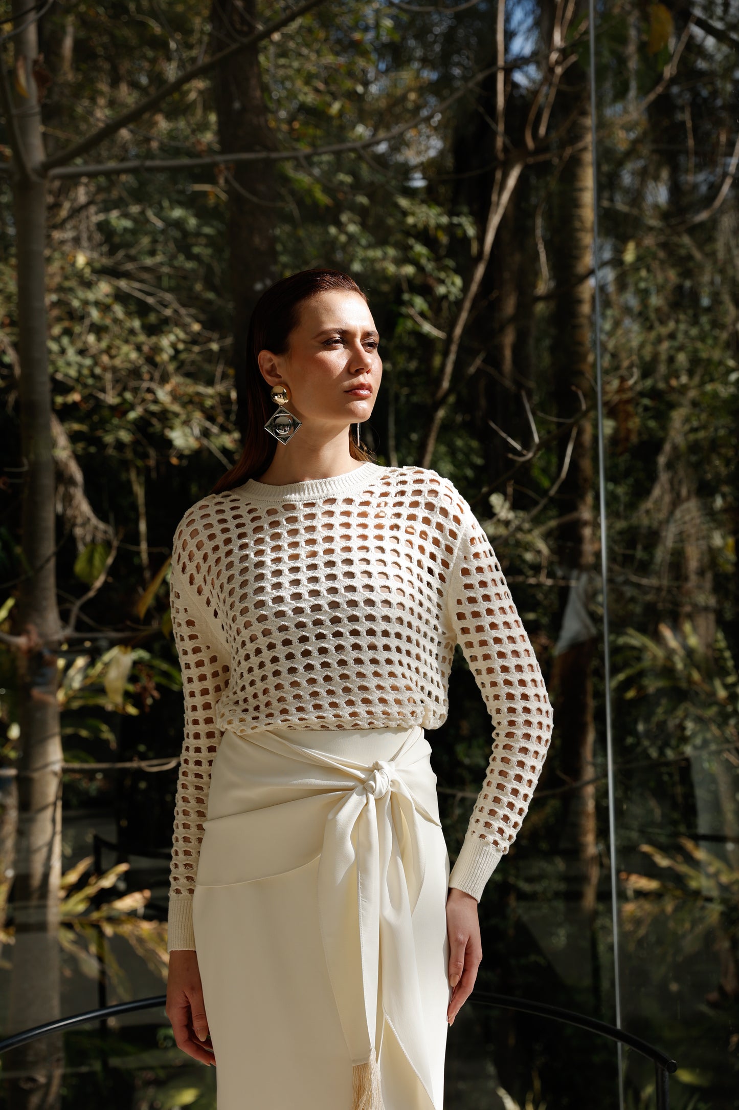 Estilo e leveza se encontram nesta blusa em tricô vazado da linha Le Beau Basics. Com trama aberta e textura marcante, ela é ideal para compor looks modernos com sobreposição — seja com tops, regatas ou bodies por baixo. Possui gola redonda, punhos e barra em ribana canelada, que garantem um ótimo ajuste ao corpo. Versátil e cheia de personalidade, é perfeita para criar produções descomplicadas, com um toque fashion e contemporâneo.