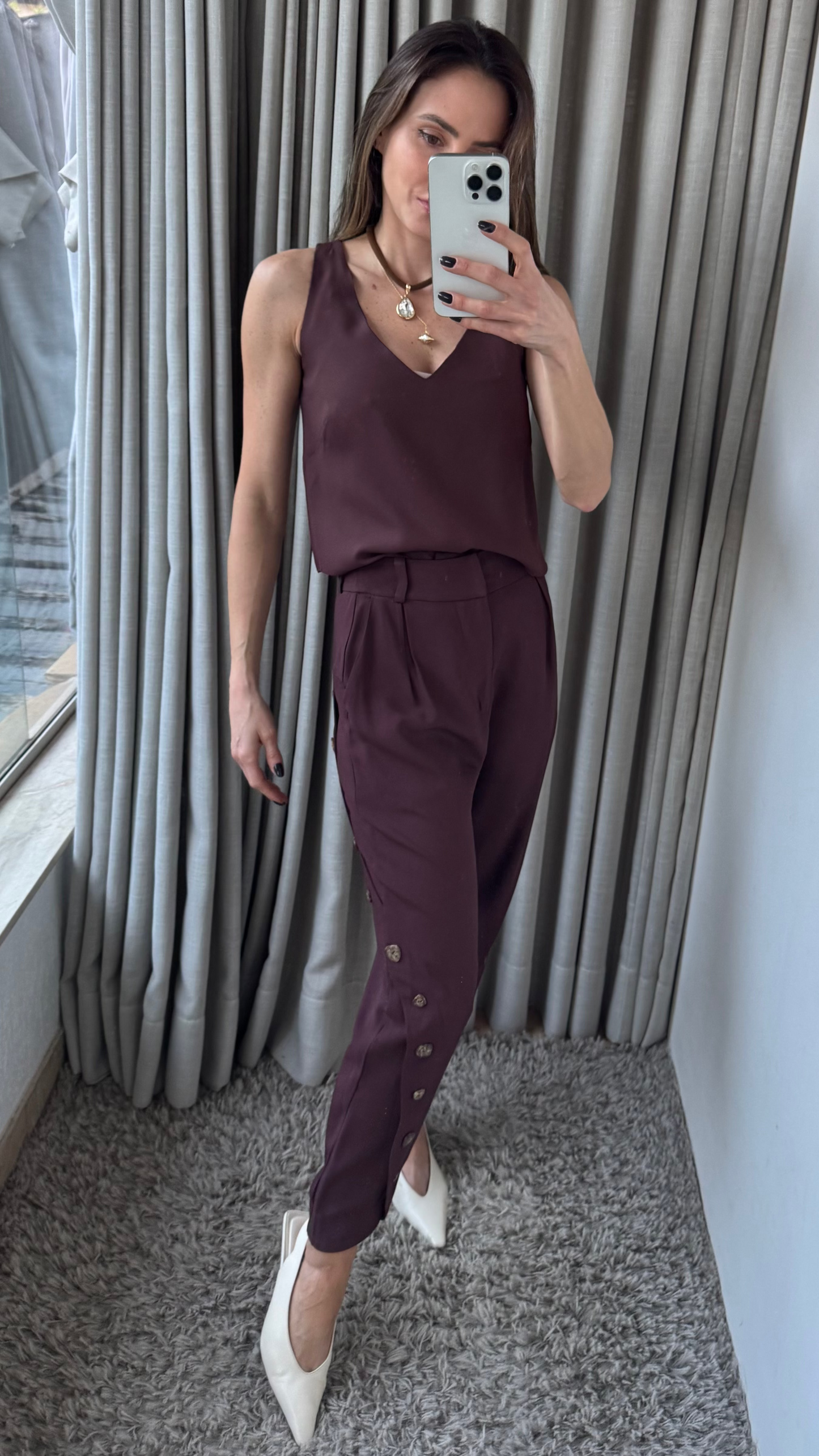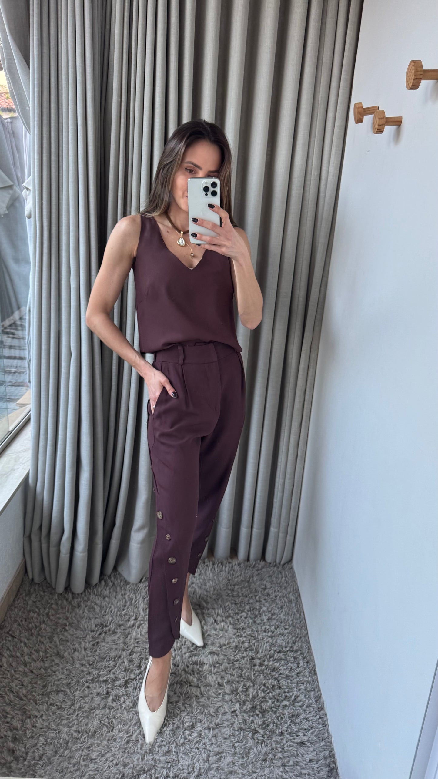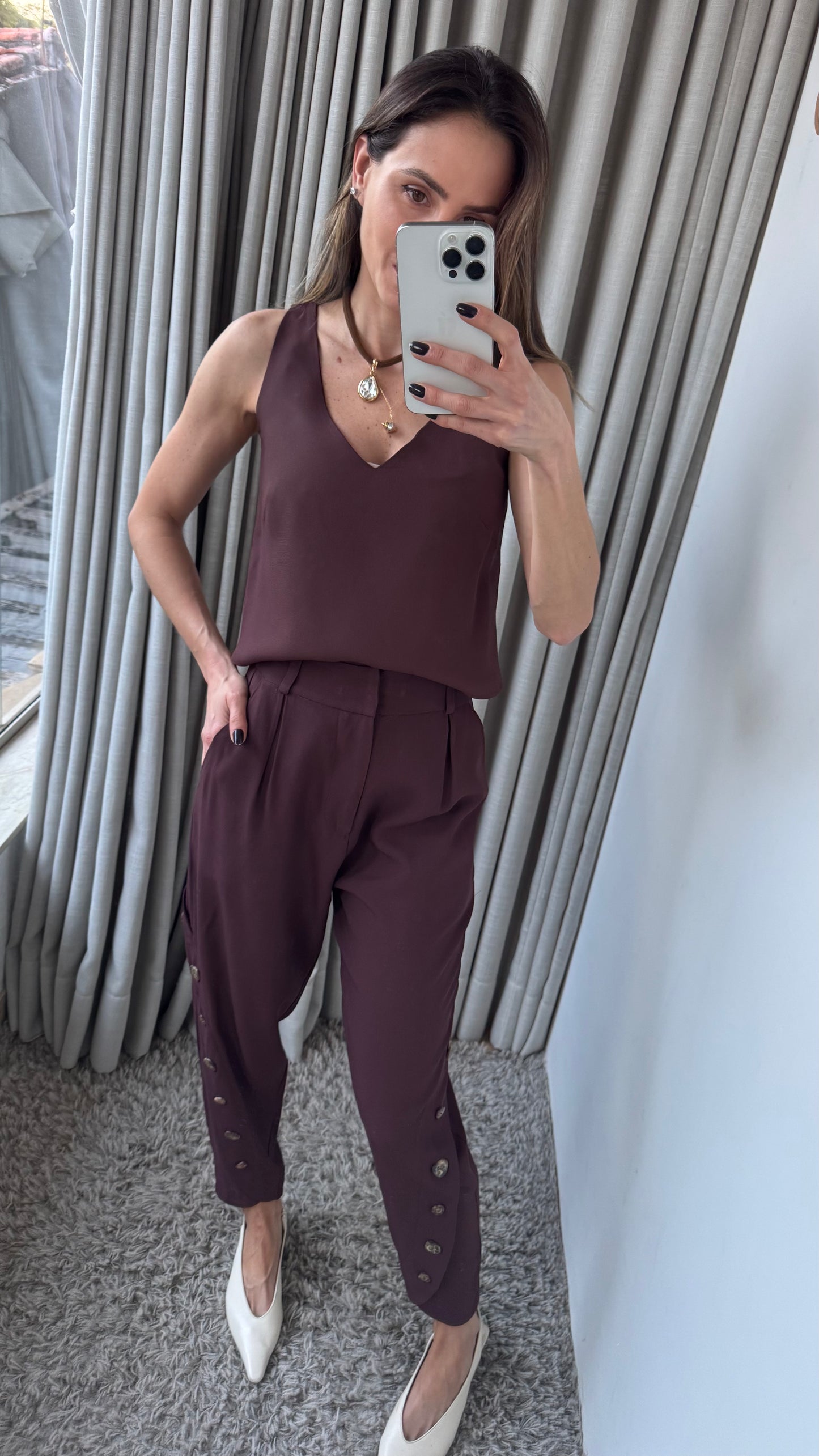 A calça Le Beau aposta no clássico com um toque de personalidade. Com cós estruturado, fechamento por zíper e bolsos faca funcionais, o destaque fica por conta dos botões fixos aplicados ao longo das laterais — do cós até a barra — que conferem charme e originalidade ao design. A barra levemente afunilada equilibra a silhueta, garantindo um caimento moderno e elegante. Uma peça versátil que eleva o visual com estilo e sofisticação.