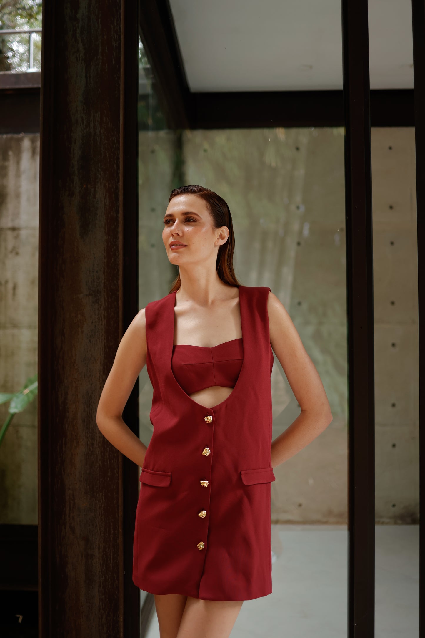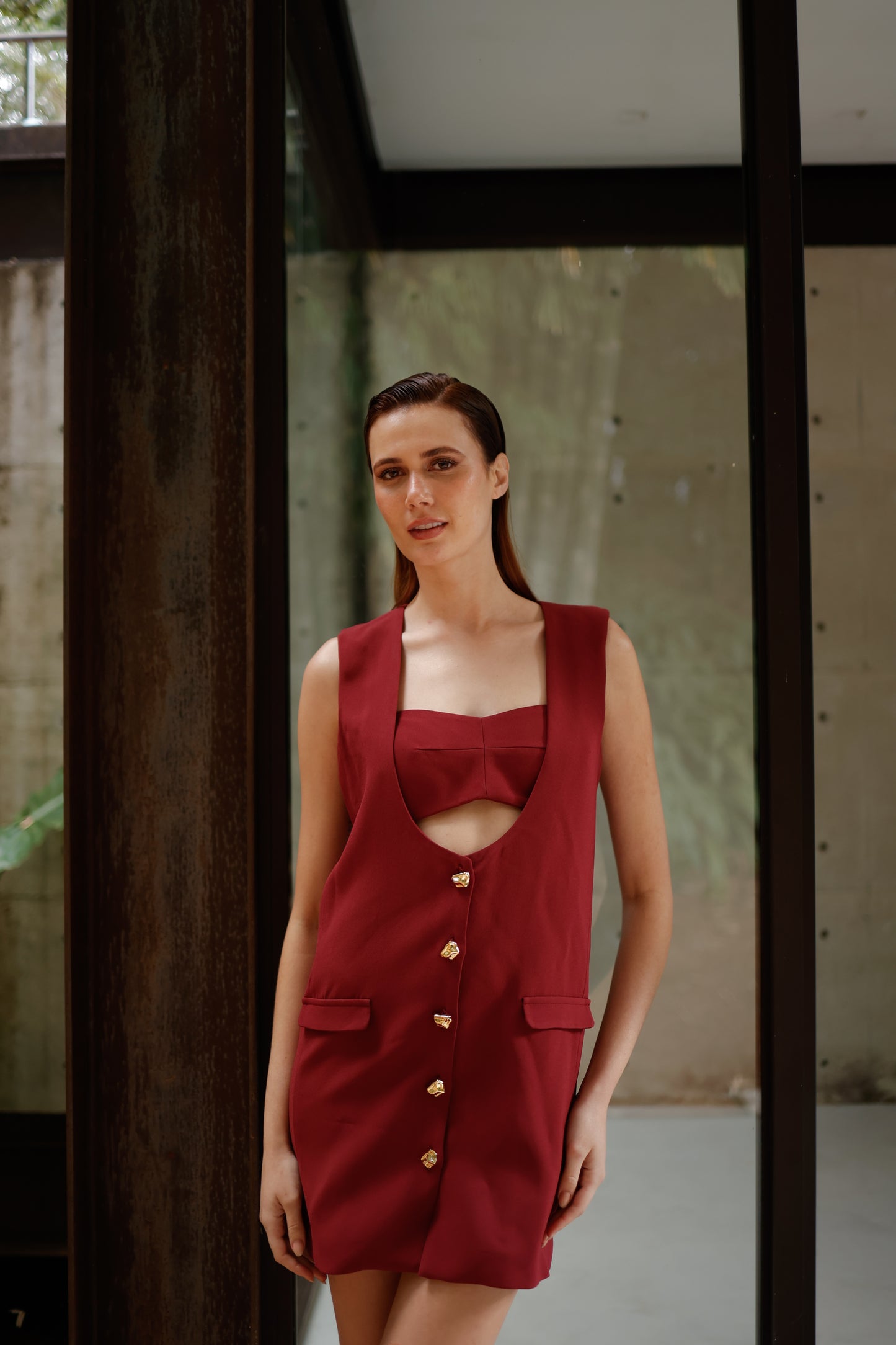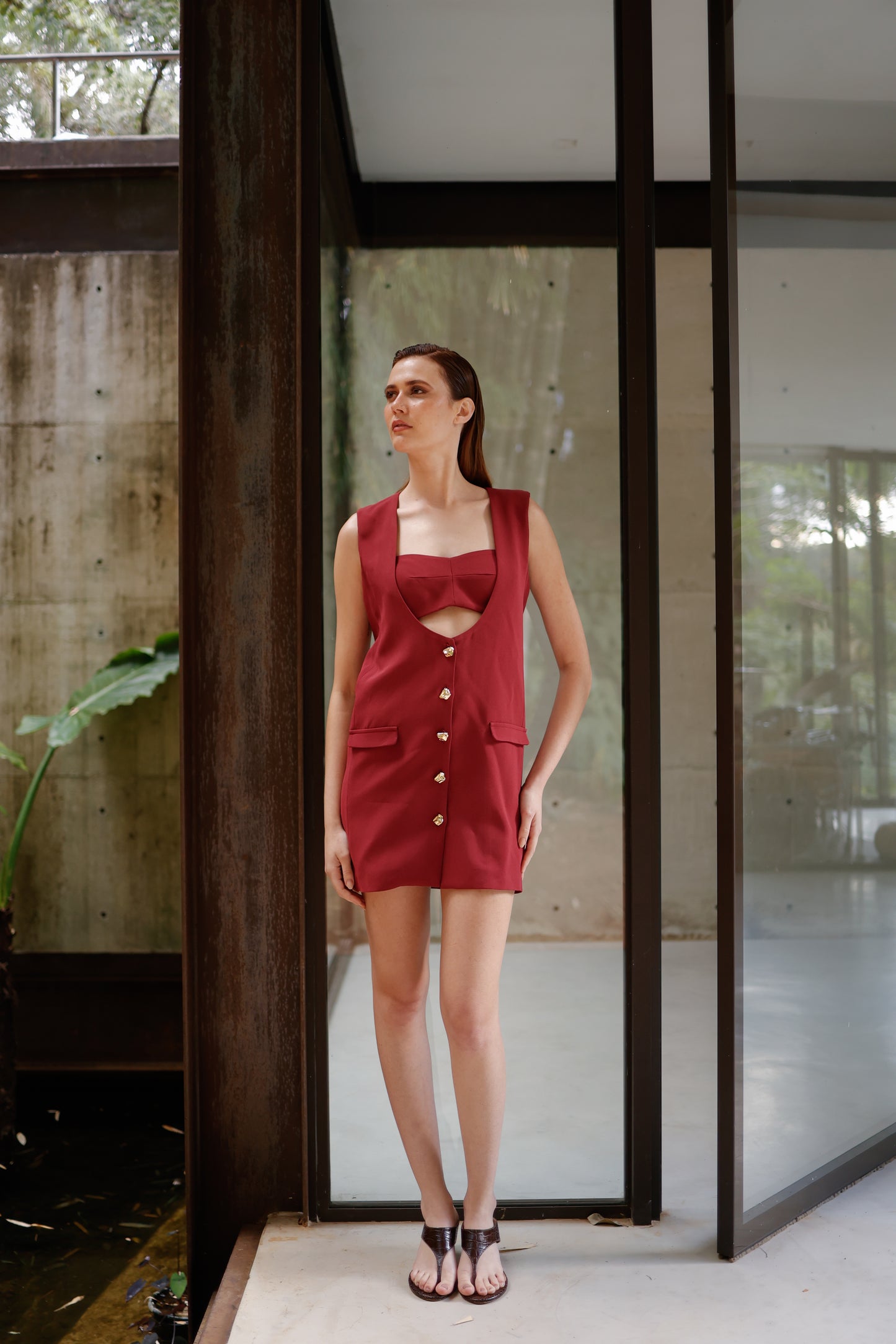 Com visual de blazer oversized reinterpretado em formato de vestido, essa peça entrega um equilíbrio perfeito entre alfaiataria clássica e sensualidade contemporânea. O decote profundo valoriza o colo com ousadia elegante, enquanto os botões encapados frontais e os bolsos importados trazem sofisticação à proposta. A estrutura da modelagem ao longo da silhueta, e o comprimento mini garantem leveza e frescor.