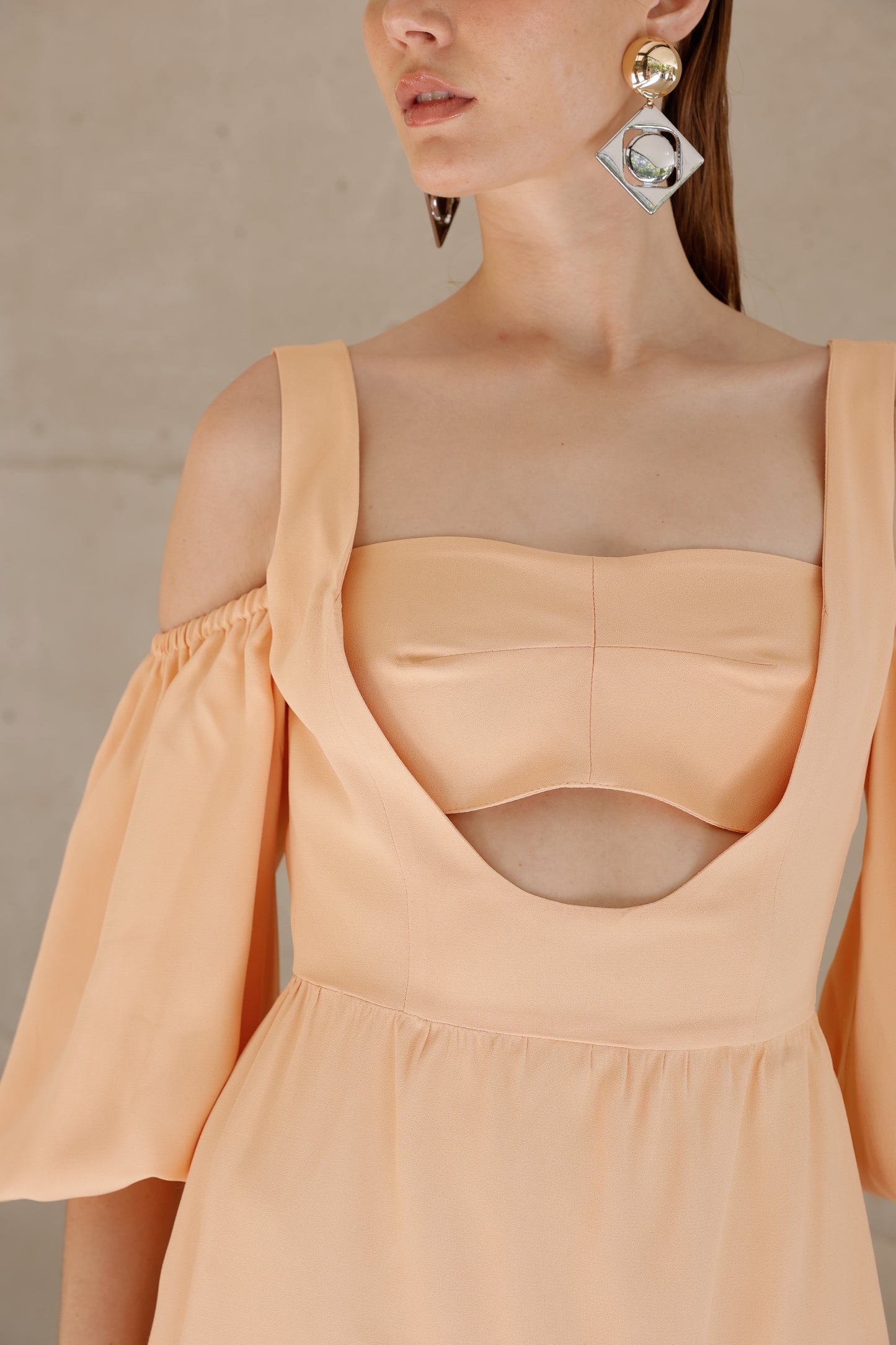 Com um design surpreendente e cheio de personalidade, este vestido curto traz um recorte frontal elegante que valoriza a silhueta e imprime modernidade ao look. O detalhe da manga bufante em tecido leve, combinada com as alças estruturadas, cria um contraste interessante entre o delicado e o ousado. Ideal para ocasiões especiais ou para um visual marcante no dia a dia, ele é a tradução perfeita de uma feminilidade atual, que aposta em cortes inteligentes e detalhes únicos.