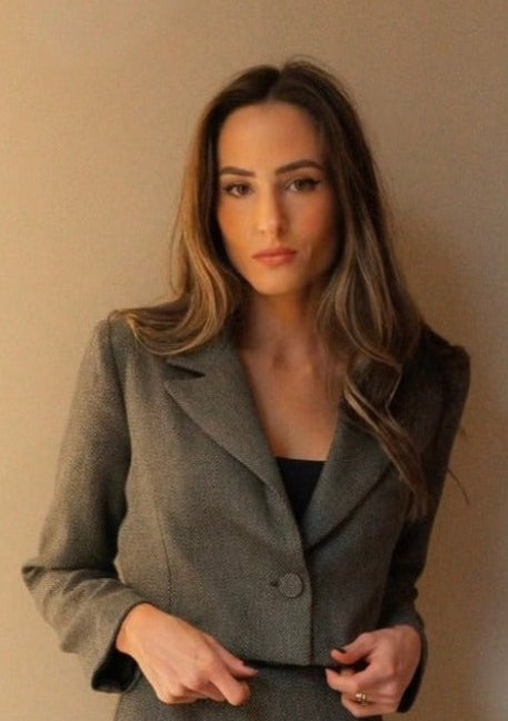 Preço regular R$ 332,00Blazer com ombreira em tweed, com lapela e fechamento frontal por botão revestido.