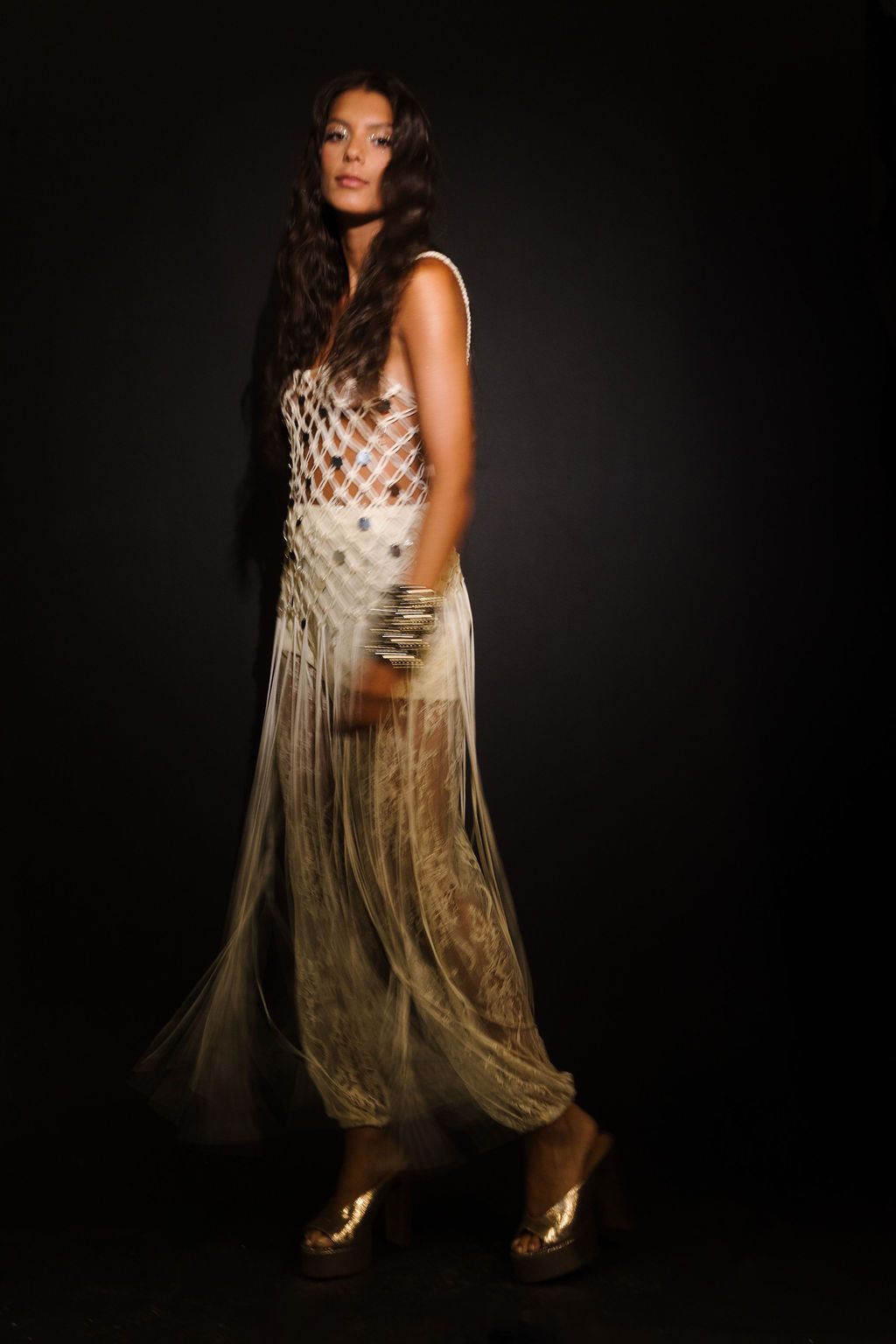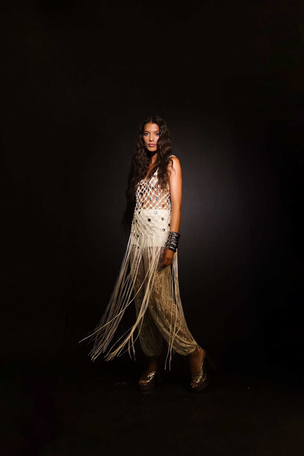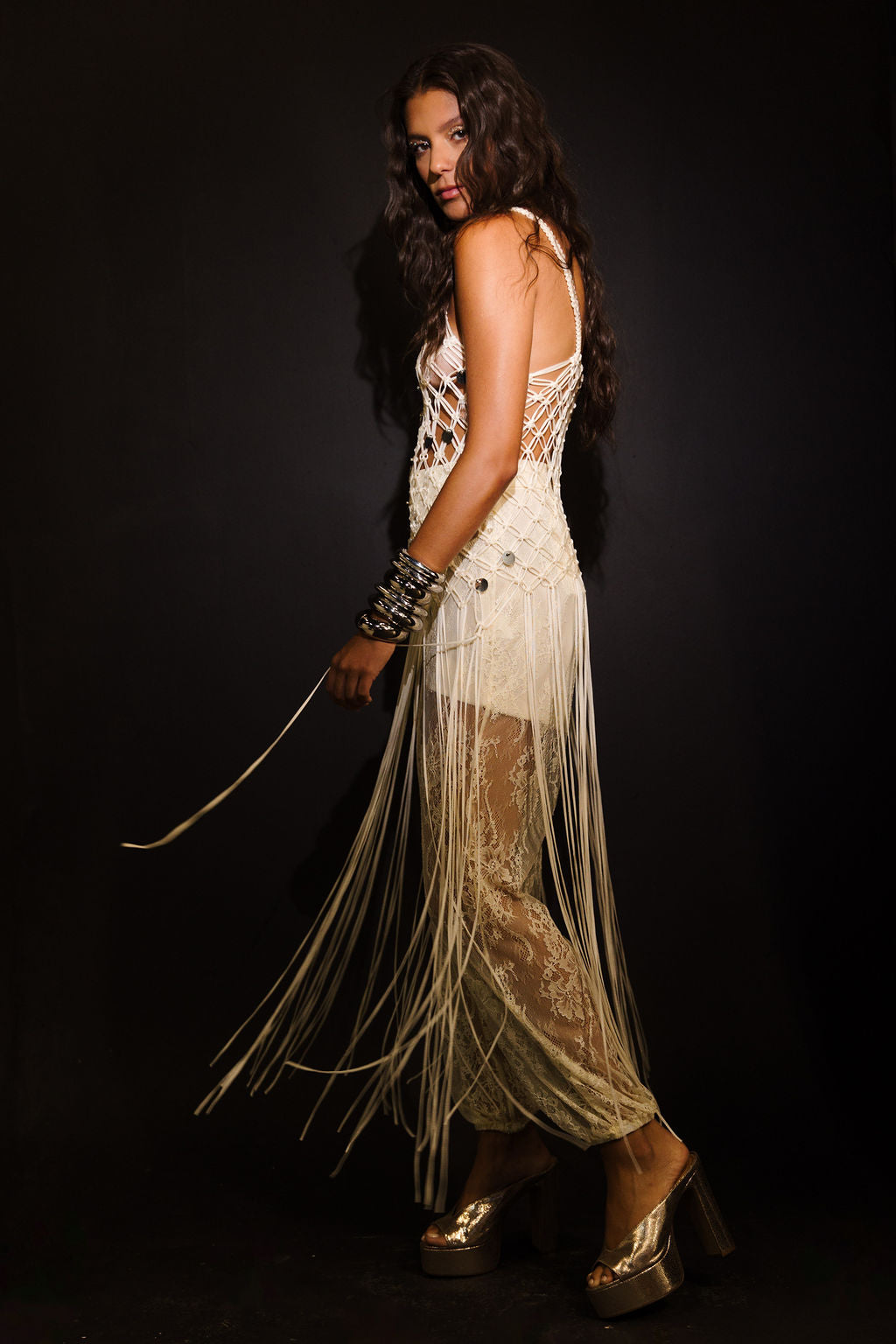 Blusa confeccionada em macramê com crochê vazado, revelando um trabalho artesanal rico em detalhes e textura. As franjas longas trazem movimento e fluidez à peça, criando um visual marcante e elegante. Com estética boho contemporânea e acabamento delicado, é ideal para composições estilosas que valorizam o feito à mão, perfeita para sobreposições ou para destacar produções com personalidade e leveza.