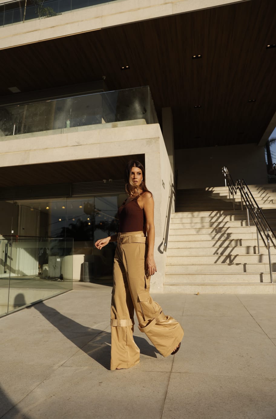 A alfaiataria encontra o street com sofisticação. Confeccionada em tecido parachute de toque leve e estrutura firme, a calça apresenta shape amplo com caimento fluido e recortes estratégicos que trazem personalidade à peça. Destaque para os detalhes utilitários com tiras e botões aplicados na barra, que permitem ajuste e estilo versátil — do look casual ao contemporâneo urbano. Cintura média com passantes, fechamento frontal por zíper e botão forrado. Uma peça statement para compor visuais modernos com identidade.