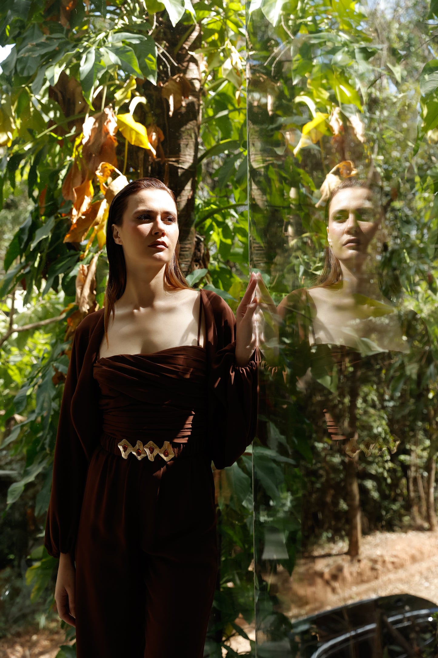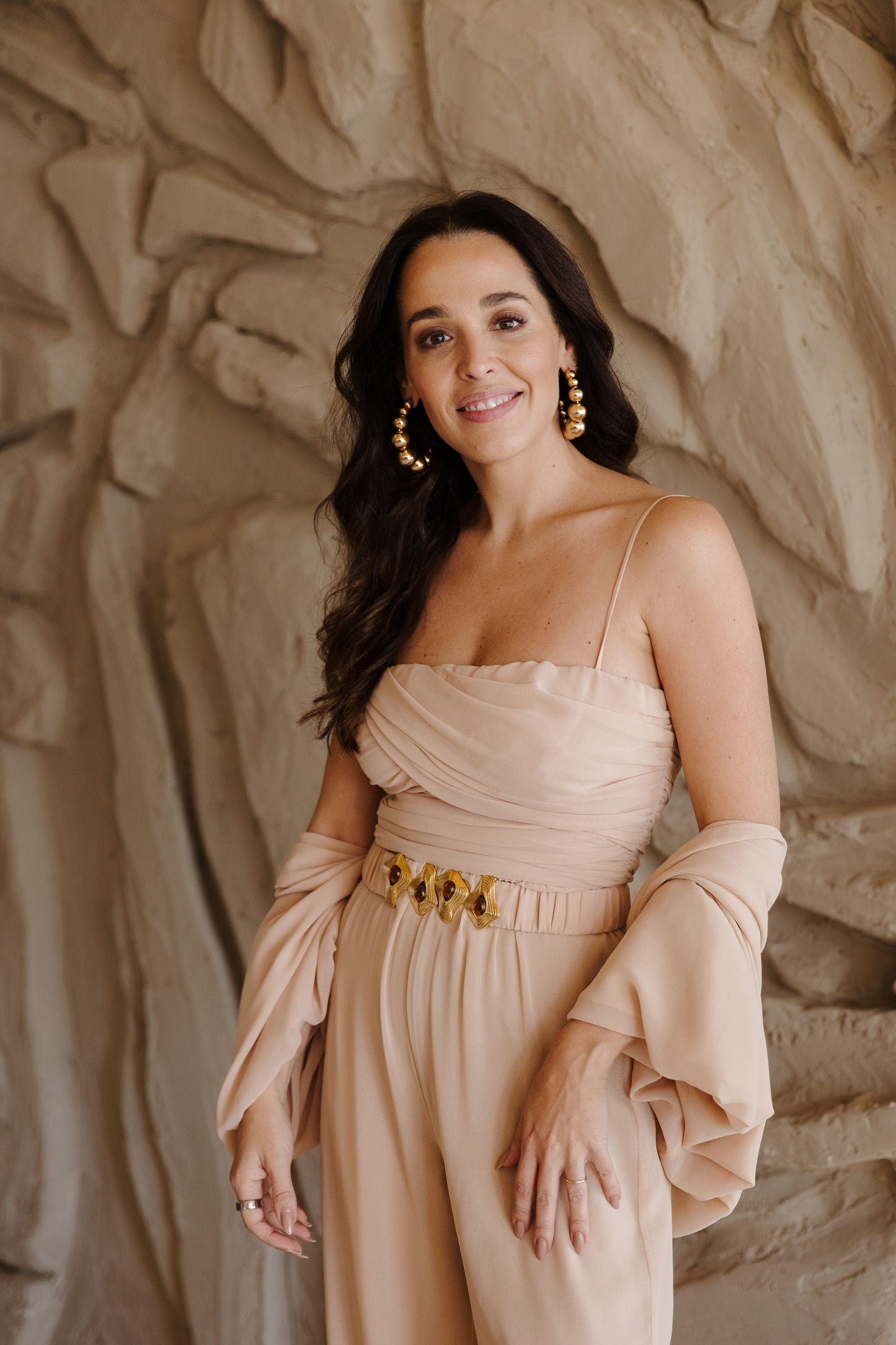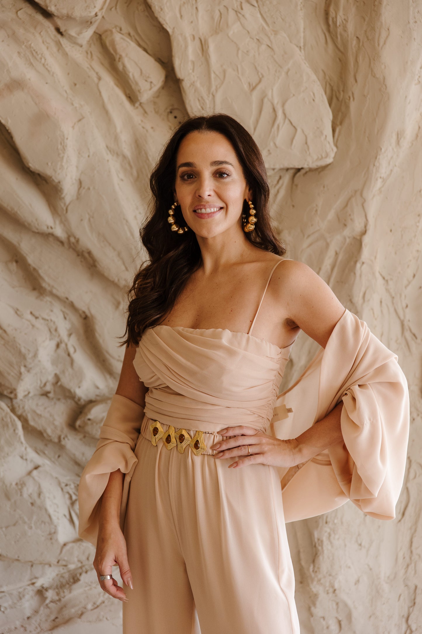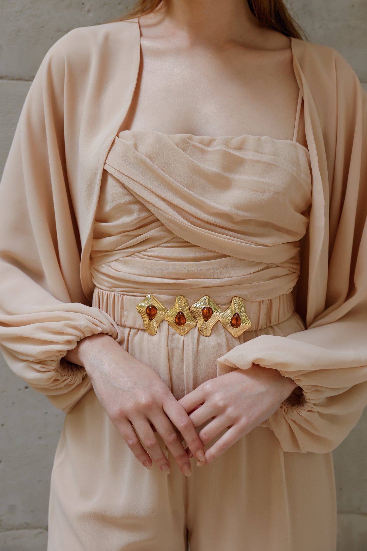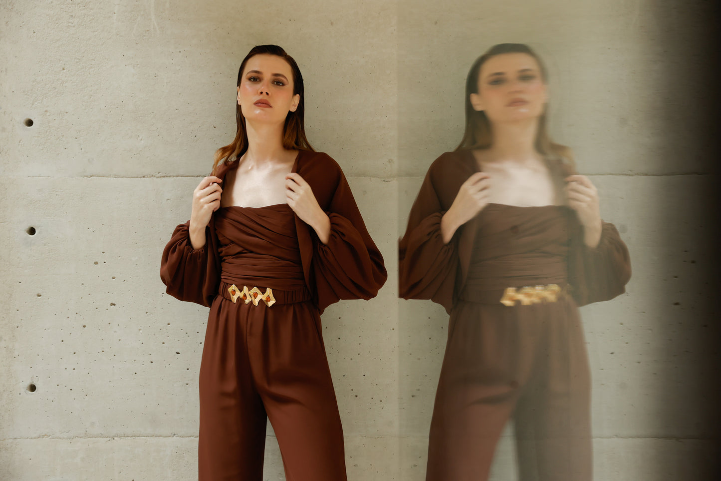A elegância se manifesta em cada detalhe deste macacão em crepe Saad, que une conforto, estilo e exclusividade em uma única peça versátil e atemporal. Com modelagem fluida e calça reta, ele conta com elástico na cintura para um caimento impecável e liberdade de movimento. O busto apresenta um delicado drapeado que valoriza a silhueta, enquanto as alças finas trazem feminilidade e leveza. Para arrematar, o casaco solto com mangas amplas e punhos em elástico adiciona um toque contemporâneo ao look. O destaque fica por conta do cinto exclusivo, forrado no mesmo tecido e com fivela diferenciada, que marca a cintura com sofisticação e reforça a identidade única da peça. Perfeito para transitar entre ocasiões com estilo e praticidade – do compromisso casual ao evento elegante, com apenas uma troca de acessórios.