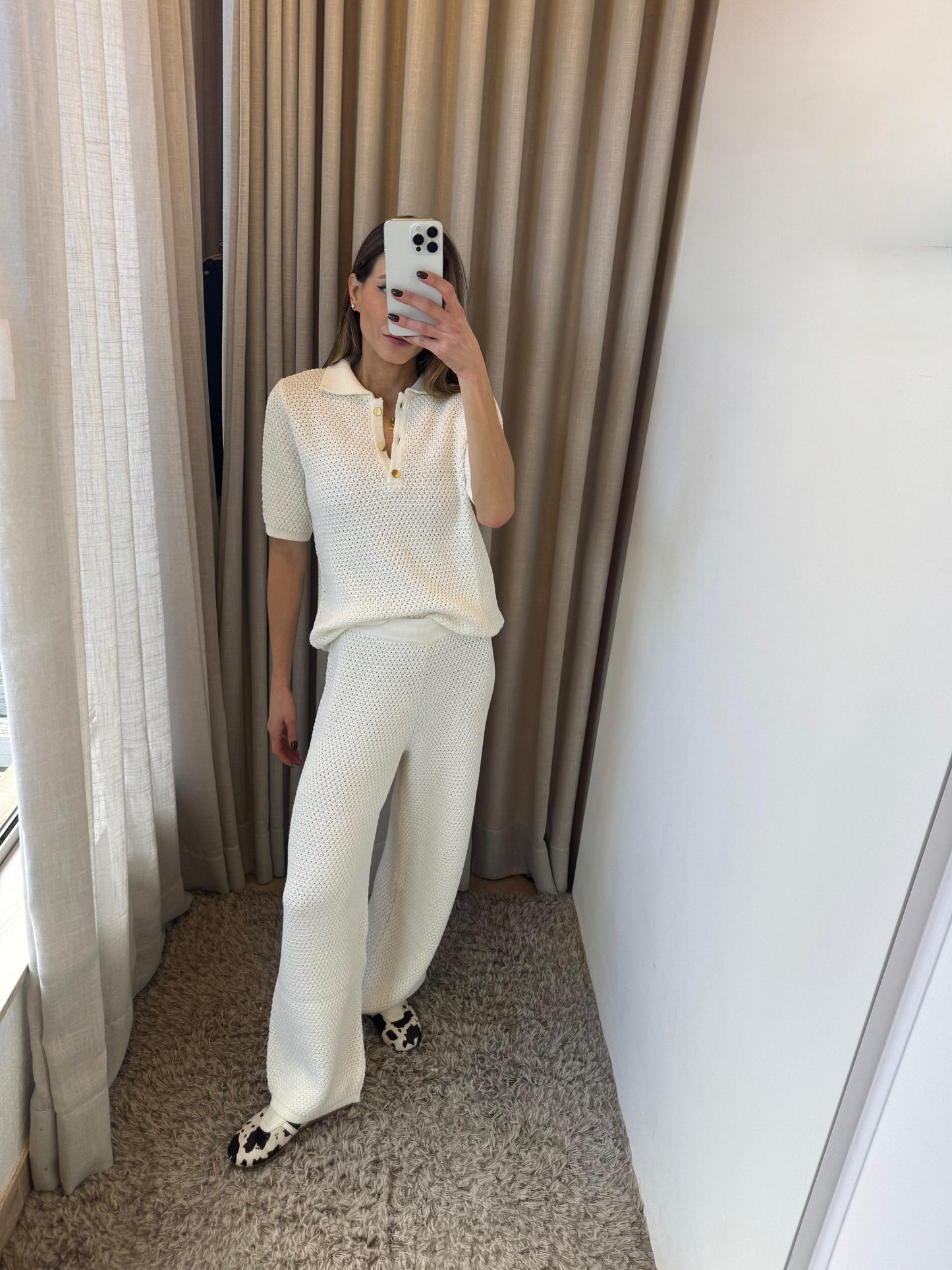 Delicado e cheio de estilo, este conjunto em tricot é perfeito para quem busca conforto com um toque de sofisticação. Confeccionado em mini telas com acabamento vazado, ele proporciona frescor e leveza ao look.