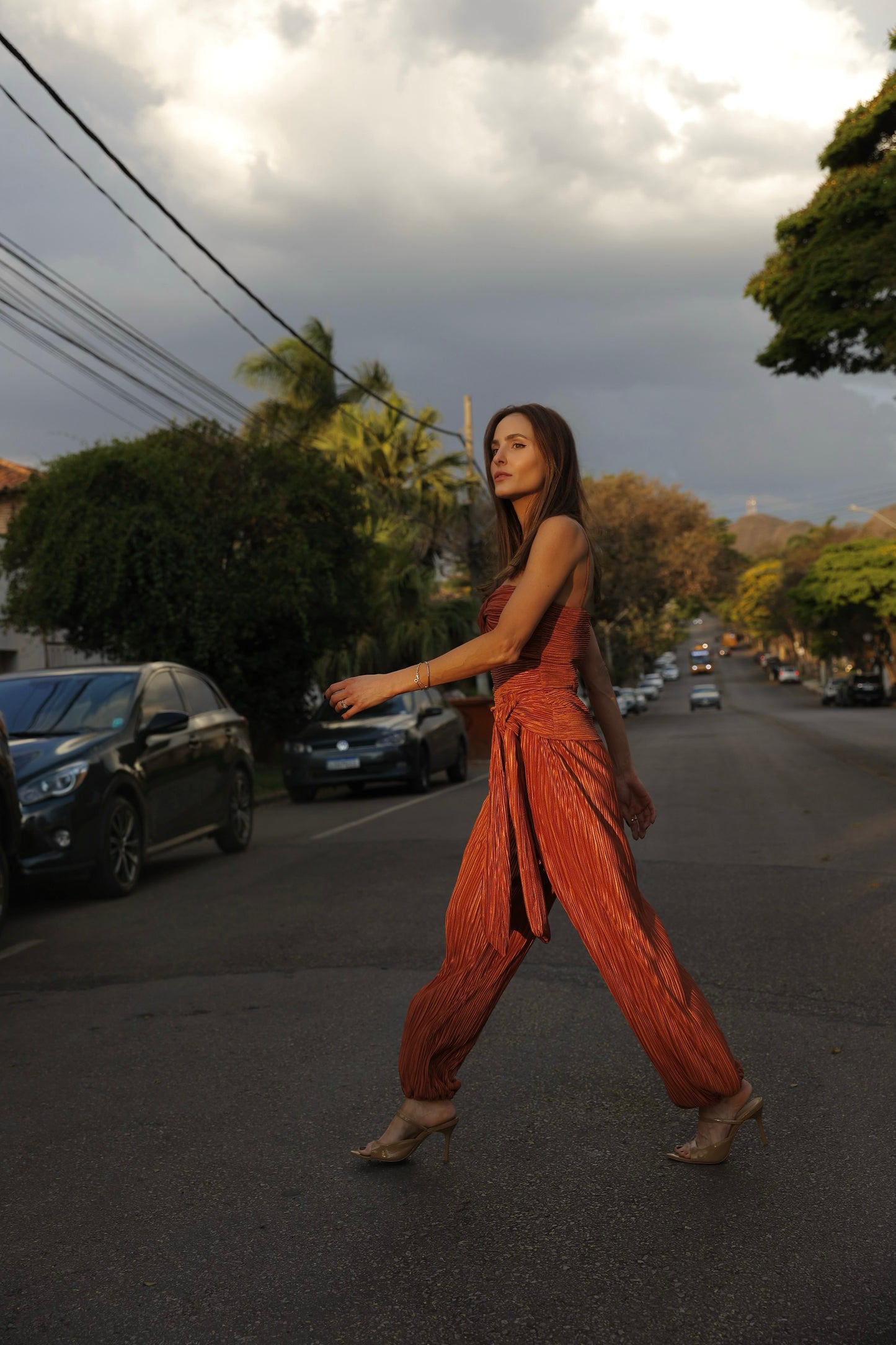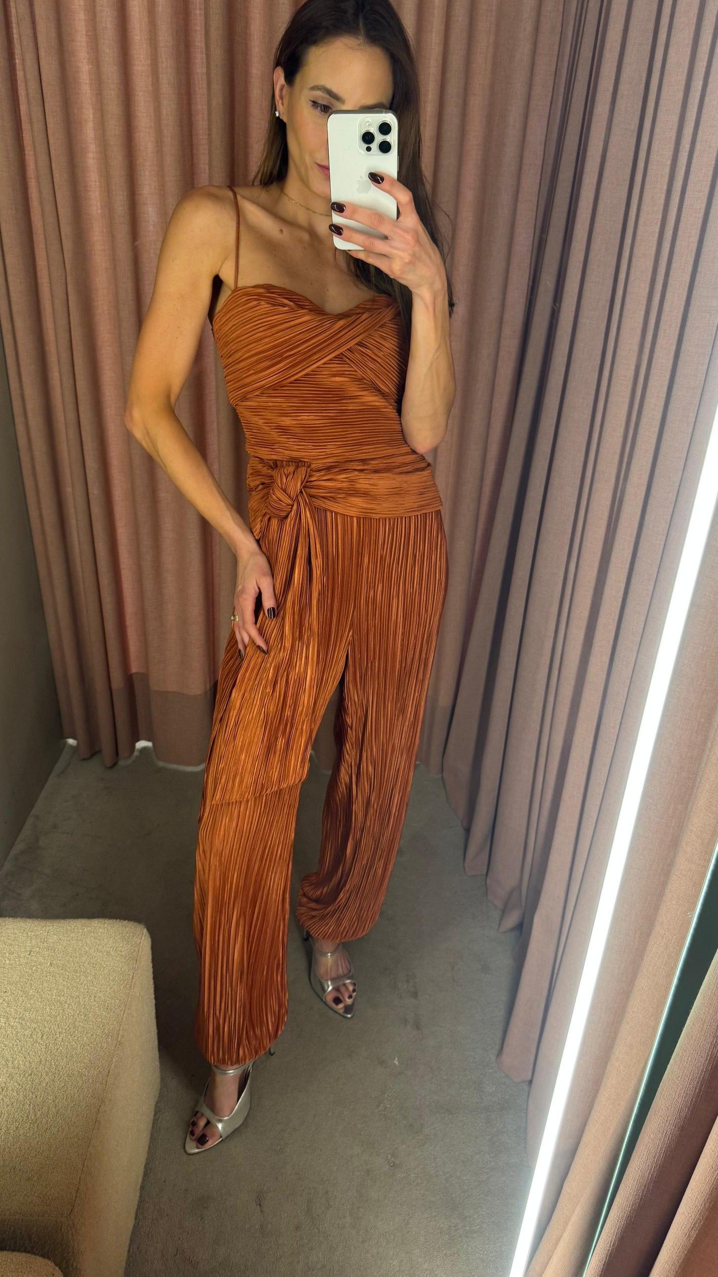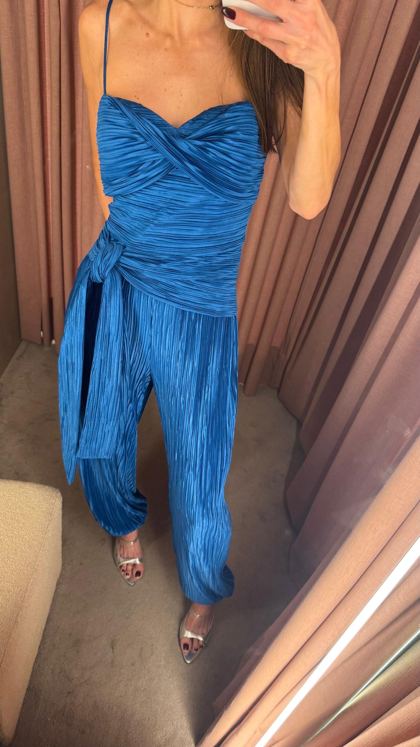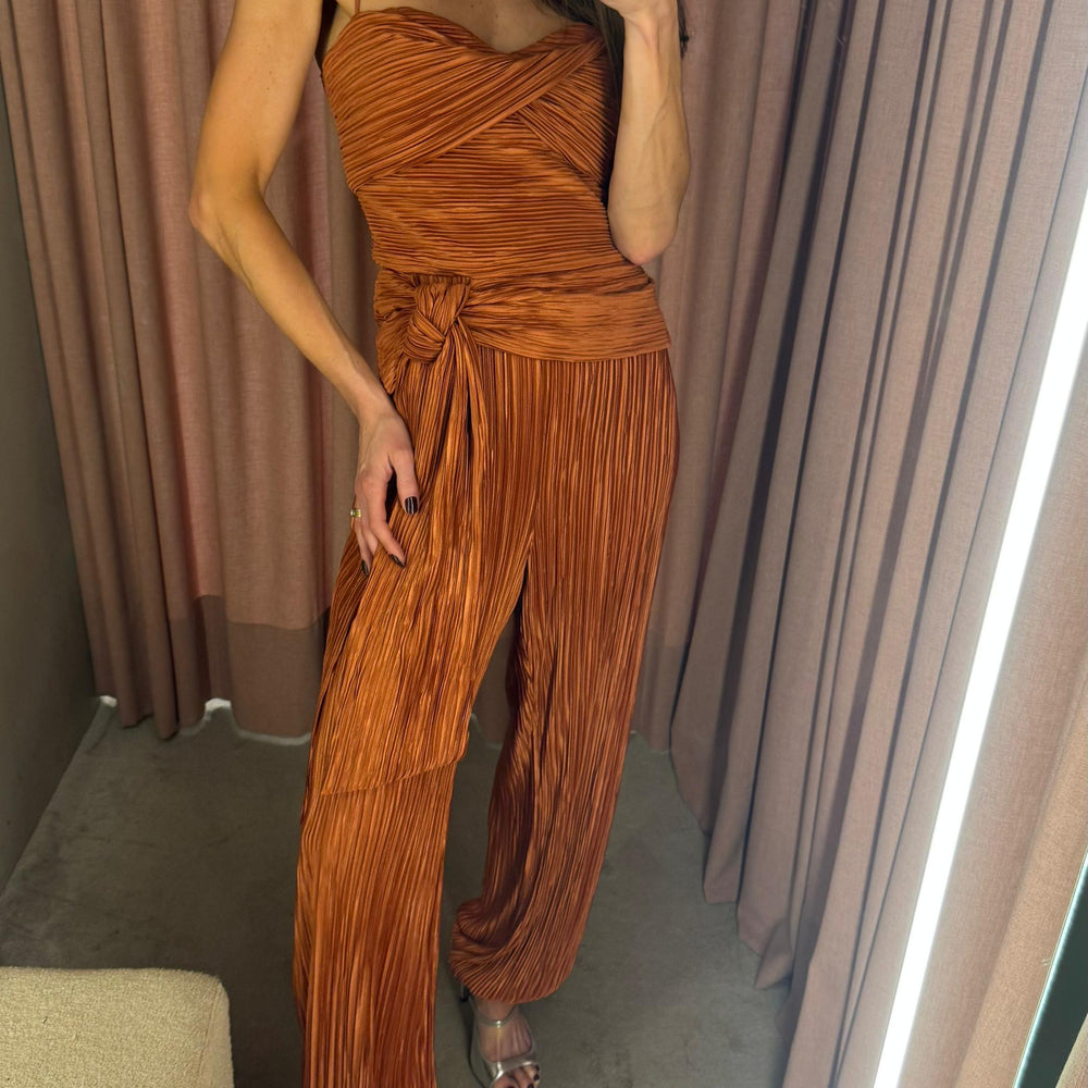 O Macacão Sahara é a união perfeita entre sofisticação e originalidade. Com tecido totalmente plissado, que confere textura rica e um caimento fluido, a peça traz uma proposta ousada e elegante, ideal para ocasiões especiais. A modelagem ampla com inspiração no estilo Aladim contemporâneo valoriza o movimento e traz leveza à silhueta, enquanto o busto ajustado com alças finas garante sustentação e feminilidade. Um dos grandes destaques é a faixa acoplada na cintura, que permite diferentes formas de amarração e styling, marcando a cintura com charme e versatilidade.