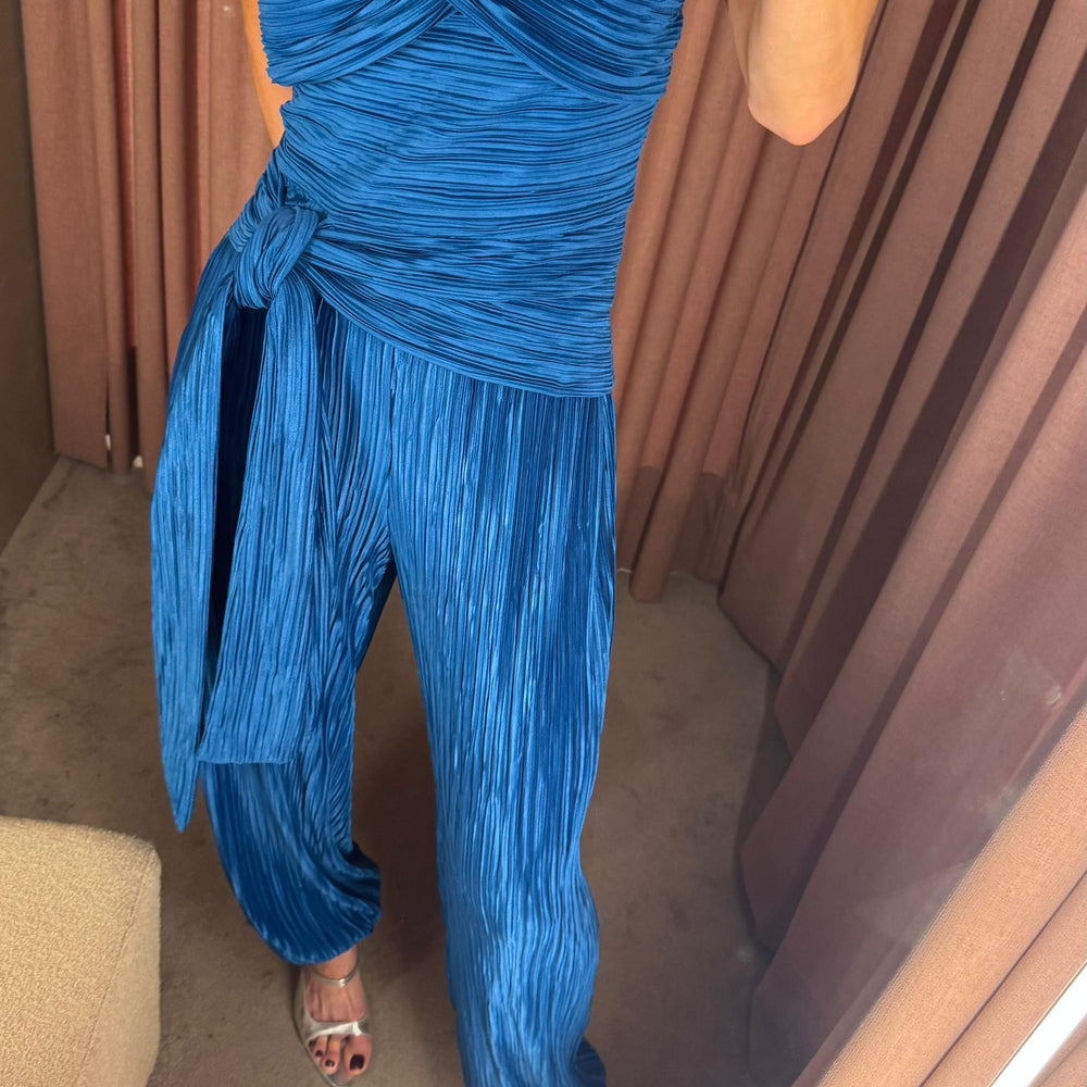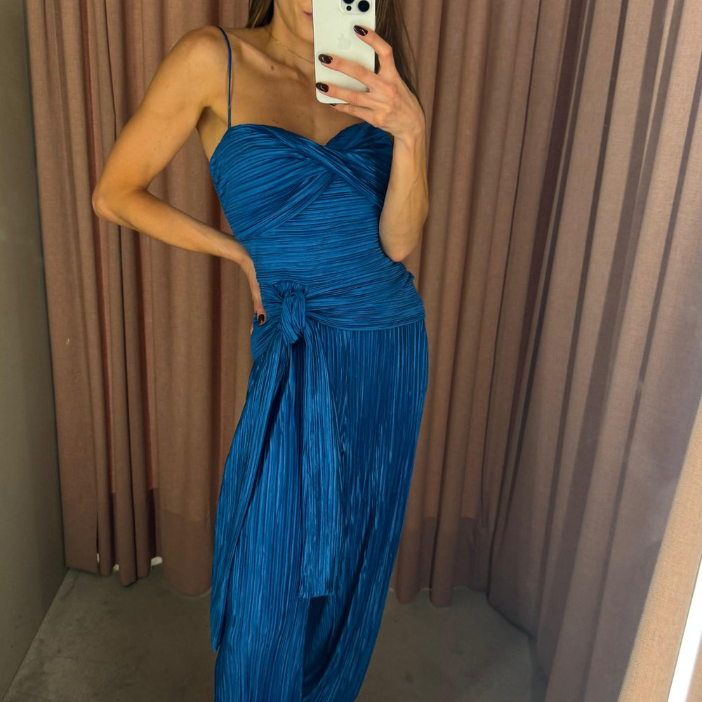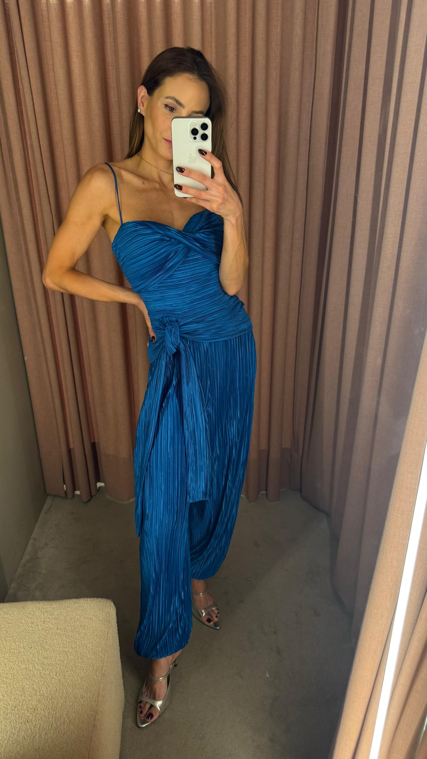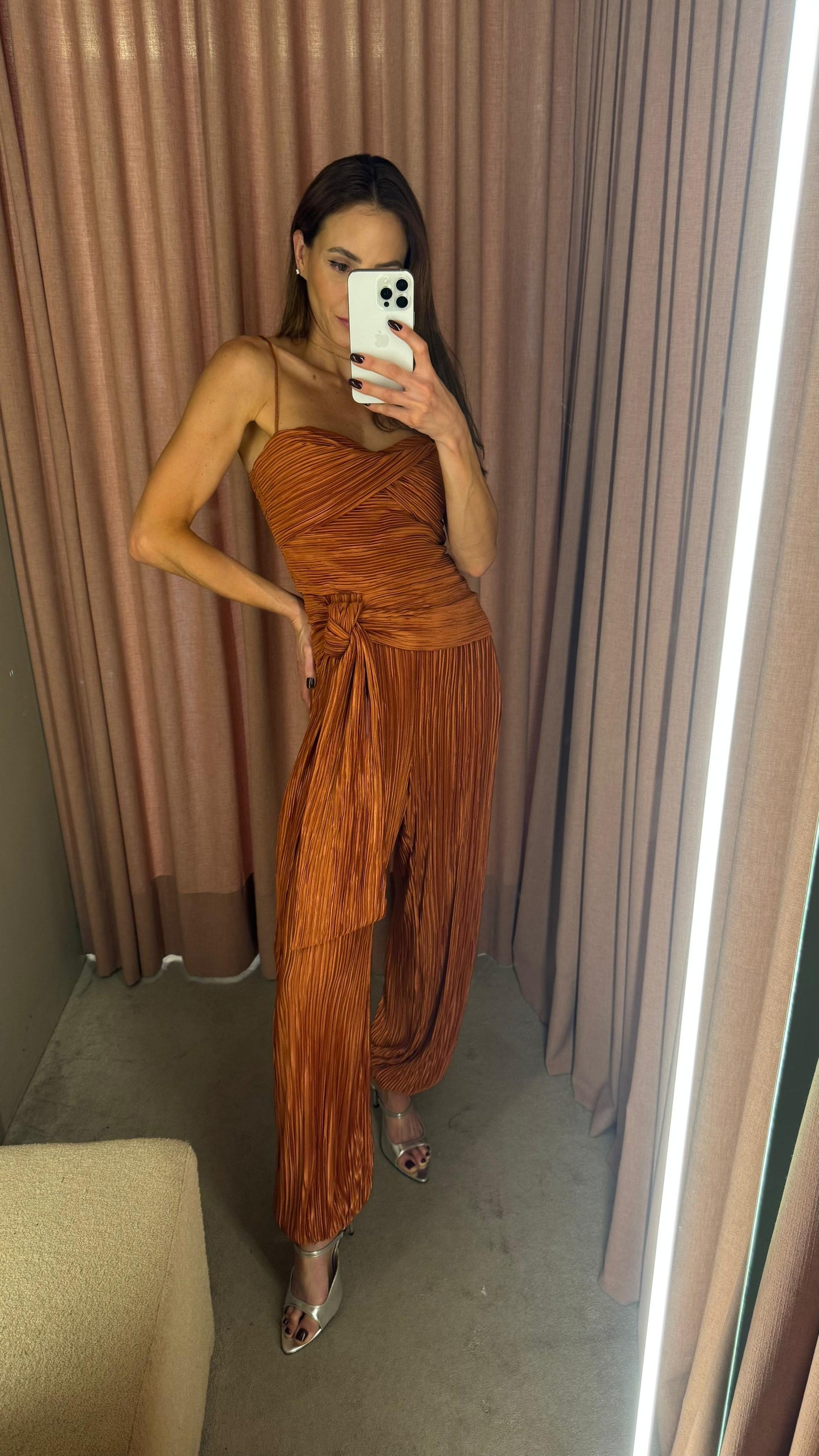 O Macacão Sahara é a união perfeita entre sofisticação e originalidade. Com tecido totalmente plissado, que confere textura rica e um caimento fluido, a peça traz uma proposta ousada e elegante, ideal para ocasiões especiais. A modelagem ampla com inspiração no estilo Aladim contemporâneo valoriza o movimento e traz leveza à silhueta, enquanto o busto ajustado com alças finas garante sustentação e feminilidade. Um dos grandes destaques é a faixa acoplada na cintura, que permite diferentes formas de amarração e styling, marcando a cintura com charme e versatilidade.